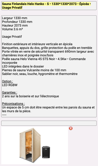 Accessoires inclus : sablier noir, seau, louche, hygromètre et thermomètre