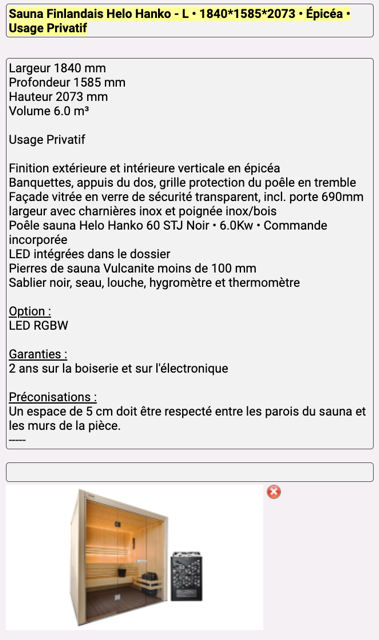 Accessoires inclus : sablier noir, seau, louche, hygromètre et thermomètre